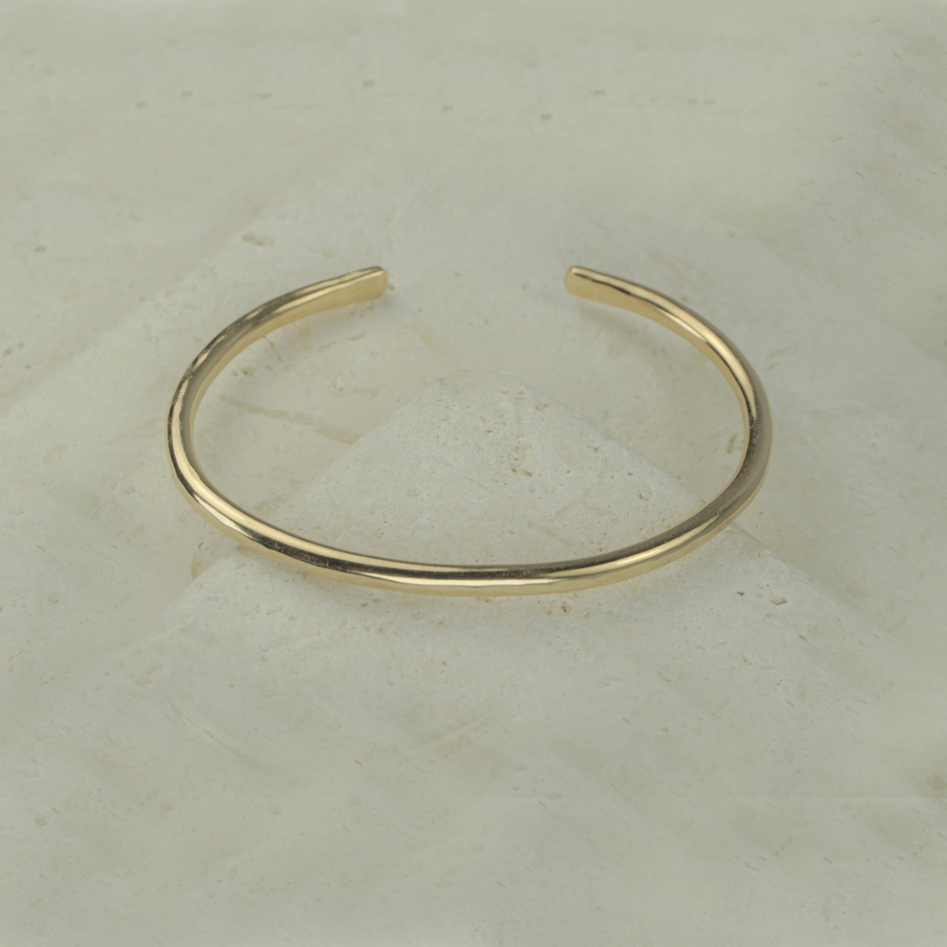 Heavy weight & substantial. Single Heavy 3.3mm gold filled cuff with a slight hammered texture.