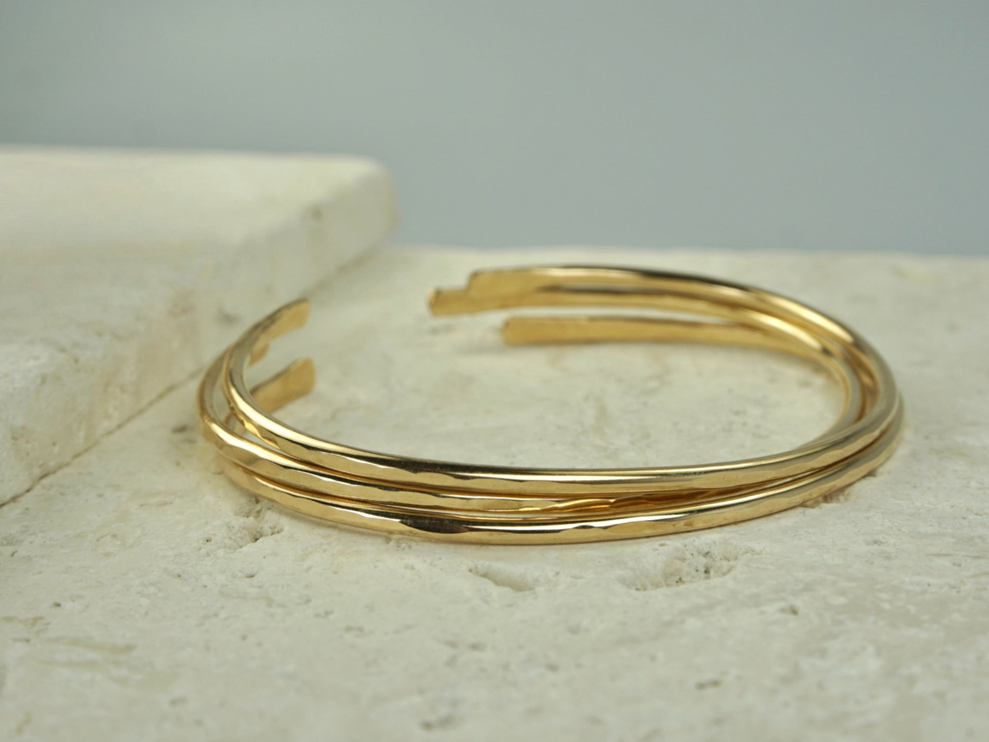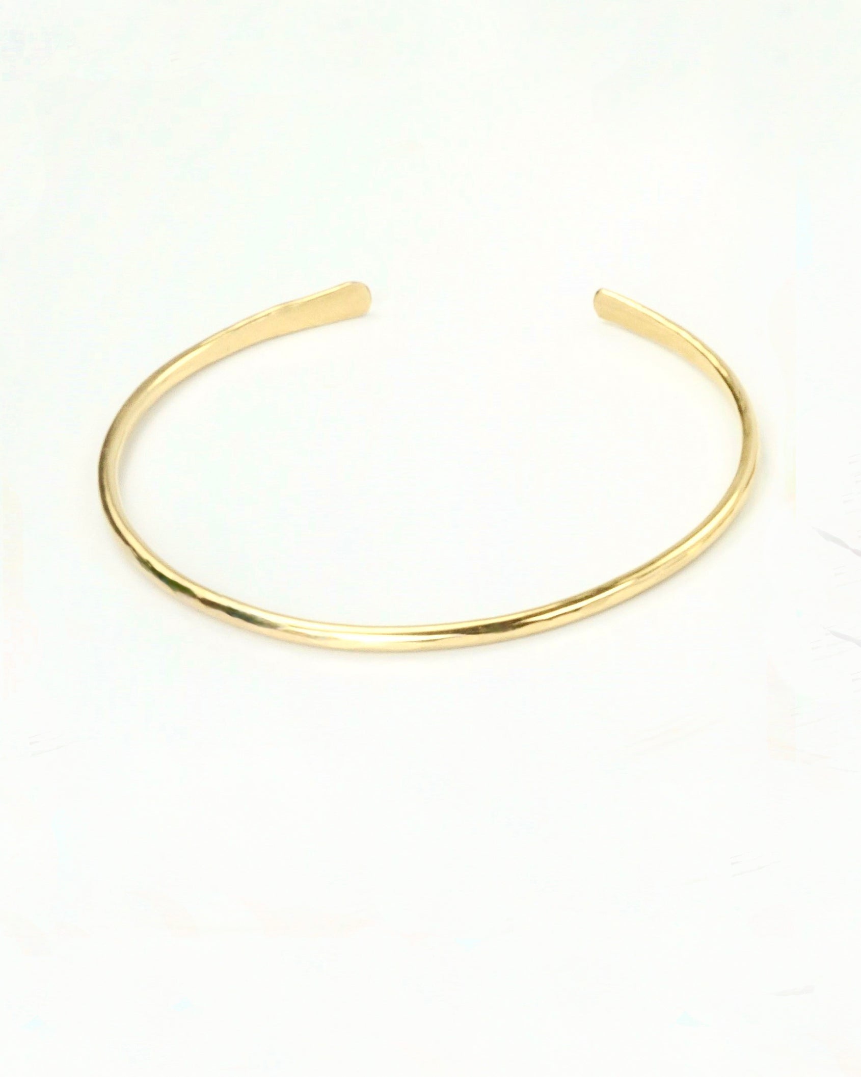 Light weight & dainty. Single light weight 2mm gold filled cuff with a slight hammered texture.