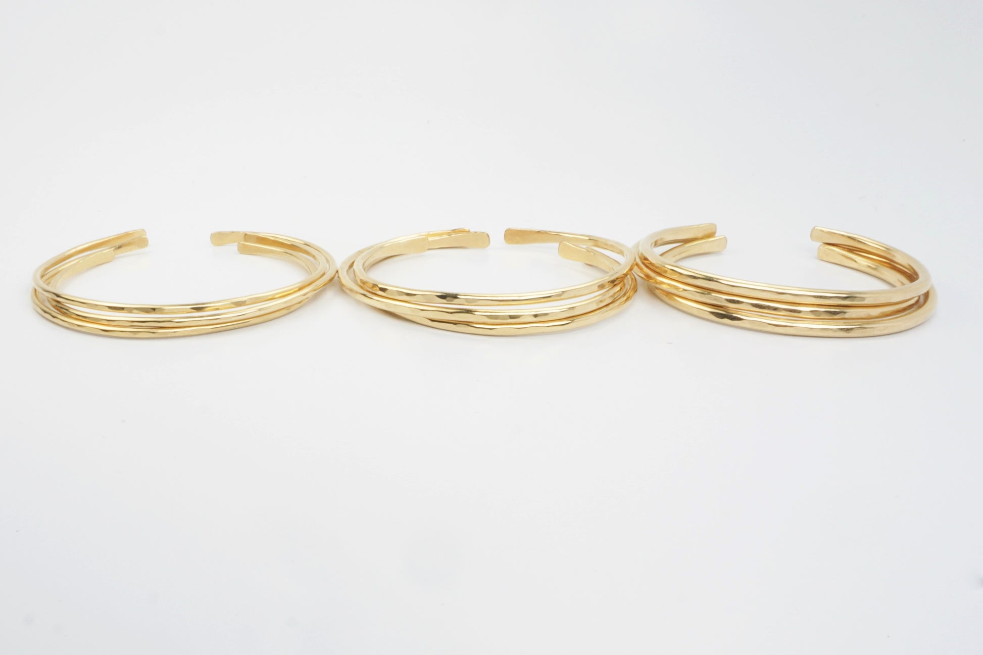 Standard medium weight & versatile. Standard 2.6mm gold filled 3 cuff bracelet set with a slight hammered texture. Each can be worn individually, as a 3 cuff set or included in a multi bracelet stack.