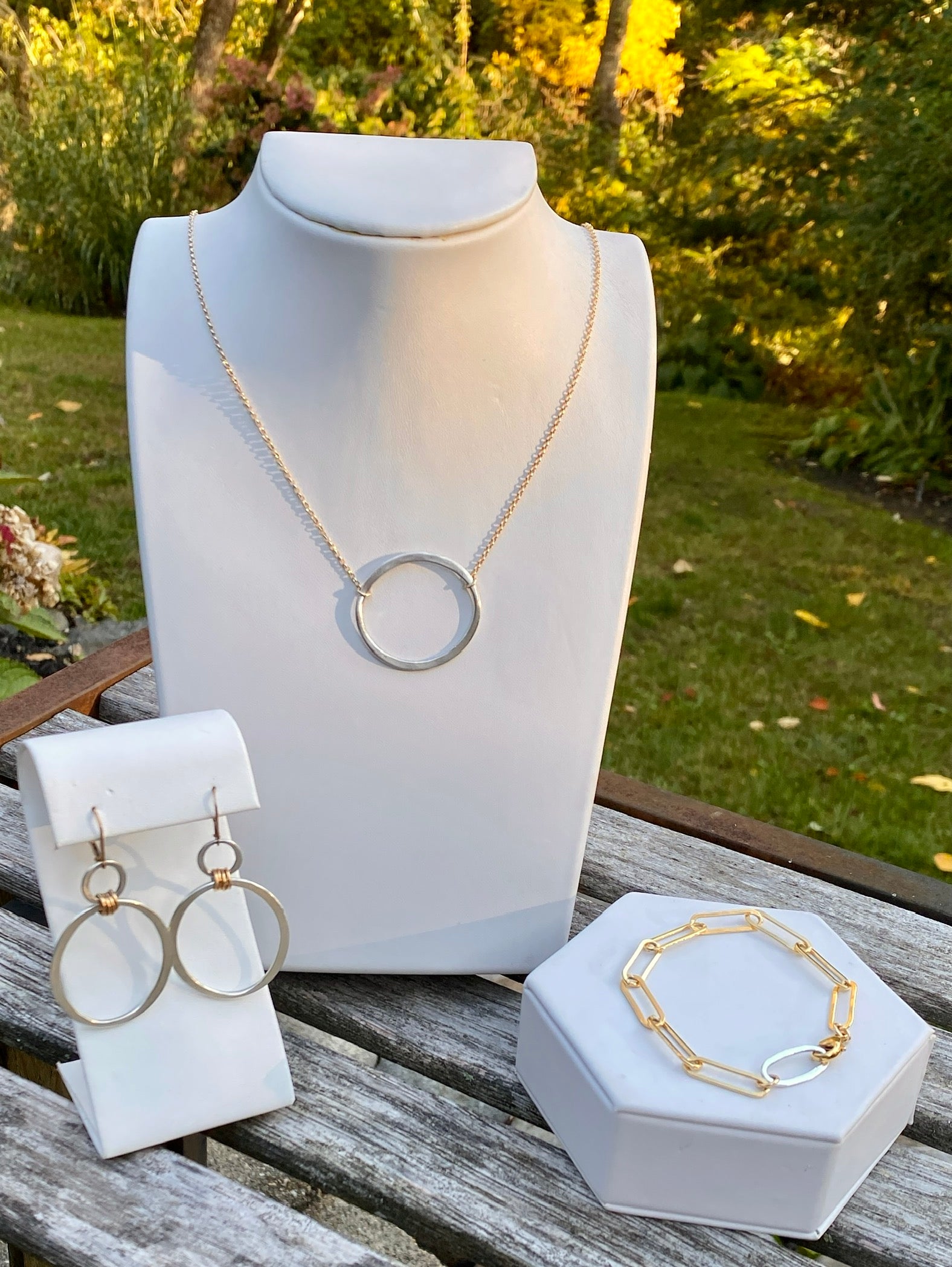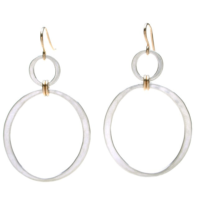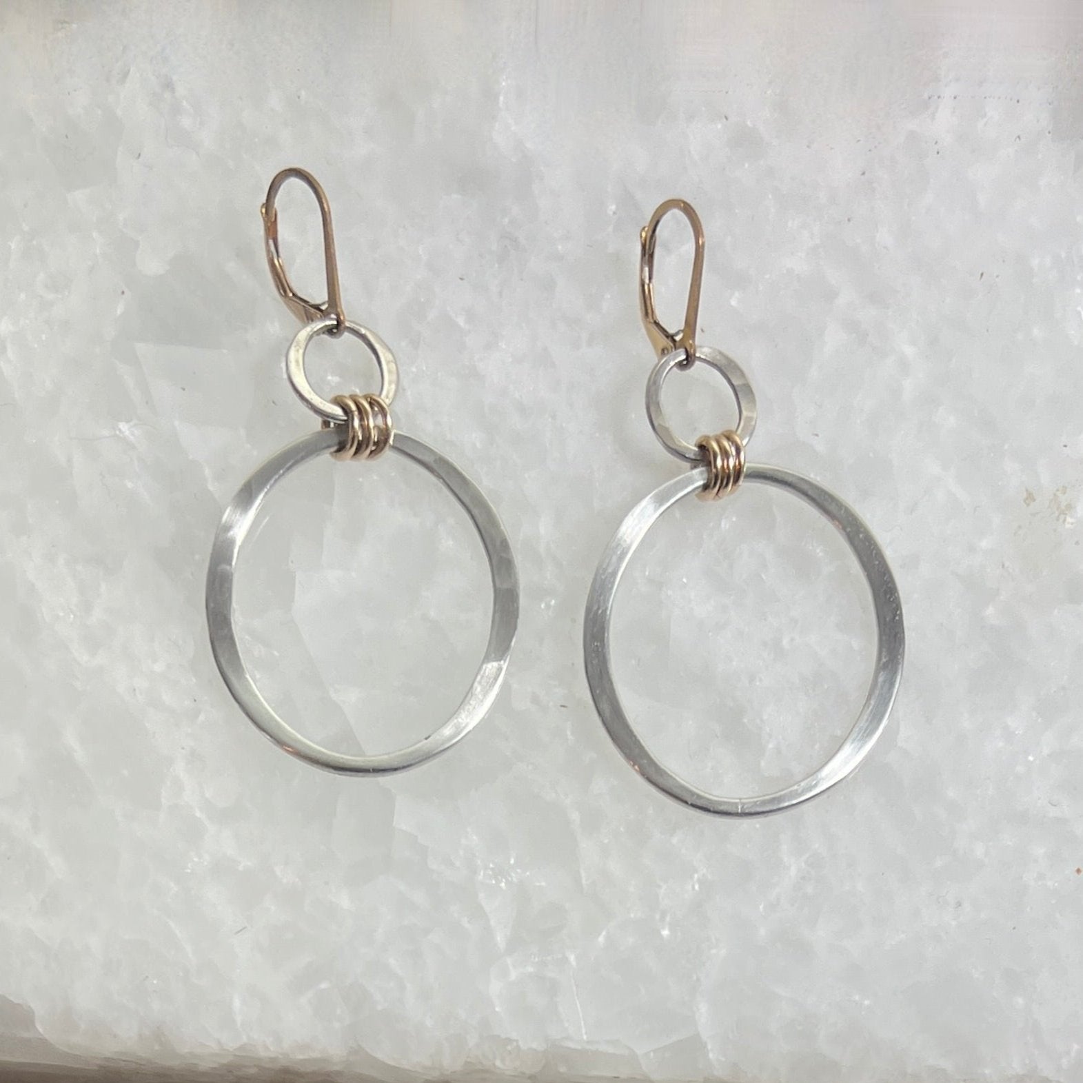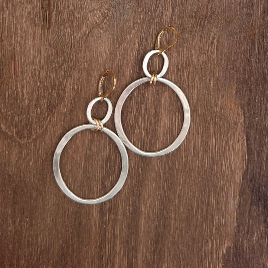 Petite & large sterling silver Kai circles connected with gold-filled links on gold-filled ear hooks or lever backs.