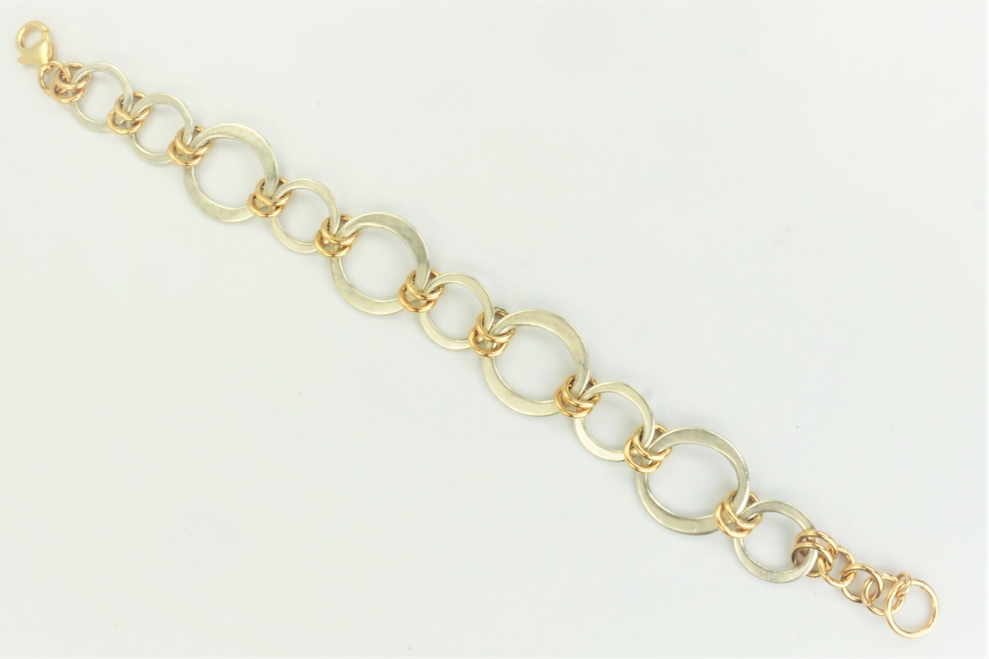 Alternating sterling silver petite & small Kai circles connected with gold-filled rings and a heavy-weight lobster clasp.