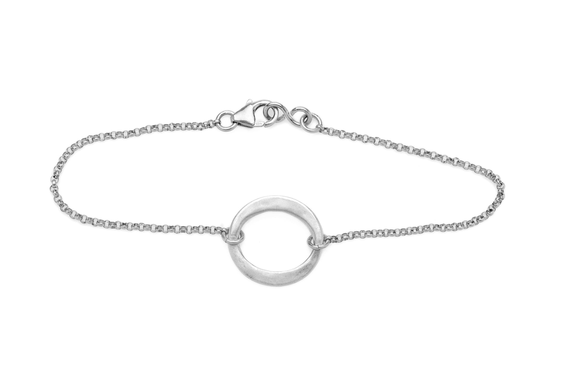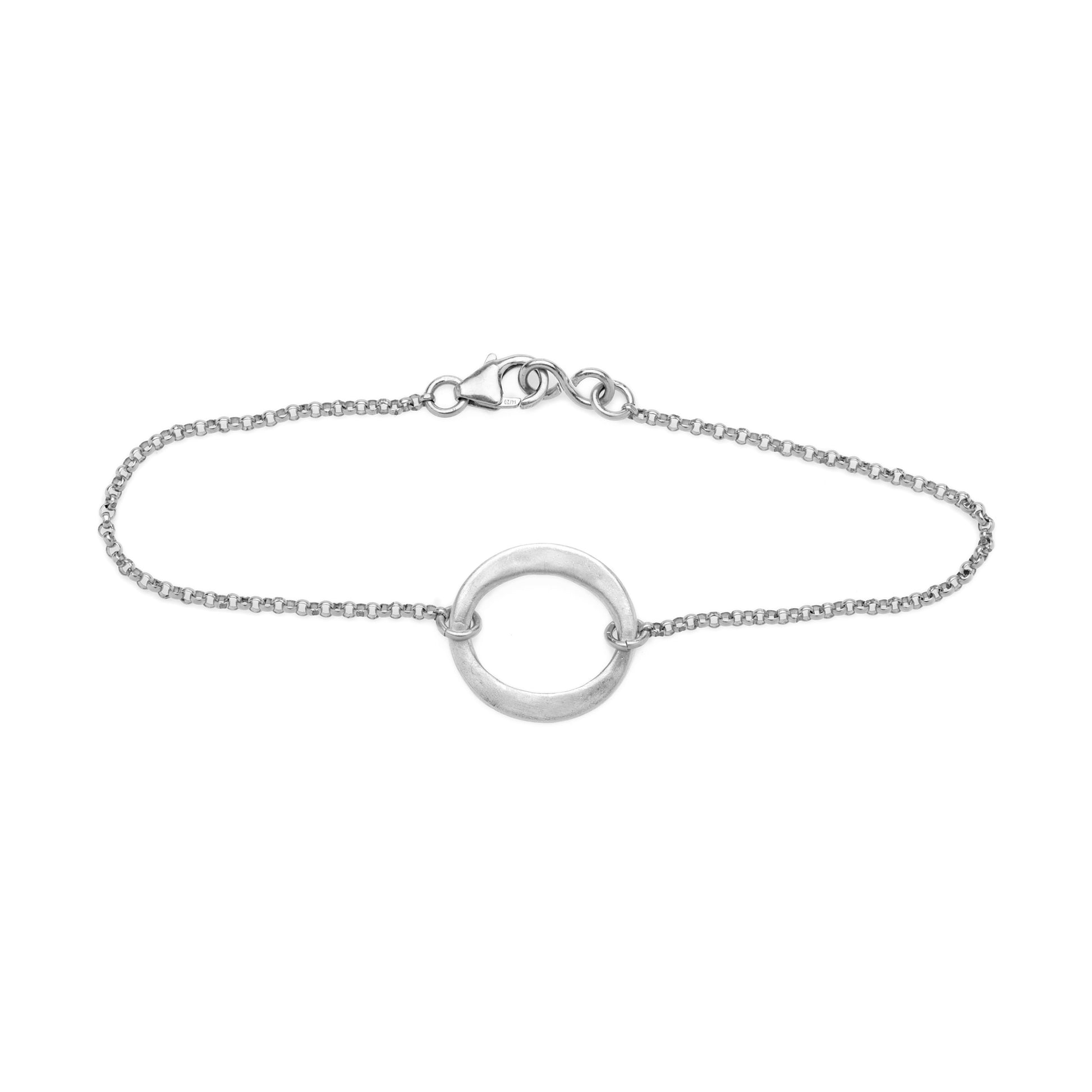 Small hammered organic matte sterling silver circle on a silver rolo chain.
