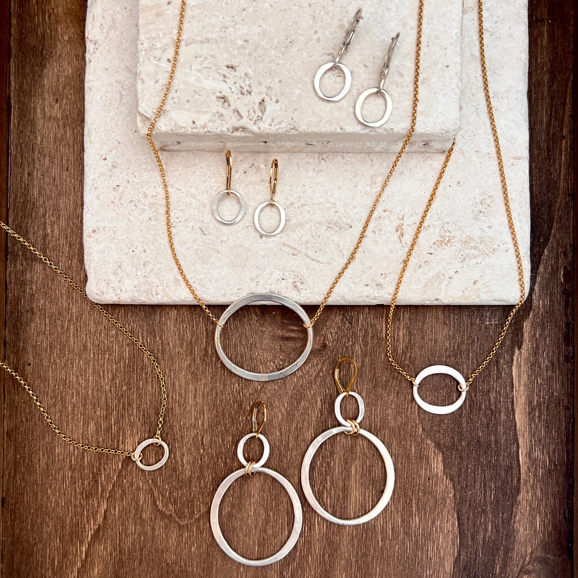 The Kai circles are hand forged with a slight hammered texture and polished to a smooth creamy matte satin that can only be achieved by hand finishing. The end result is a truly unique hand-crafted piece with rich artisanal components.