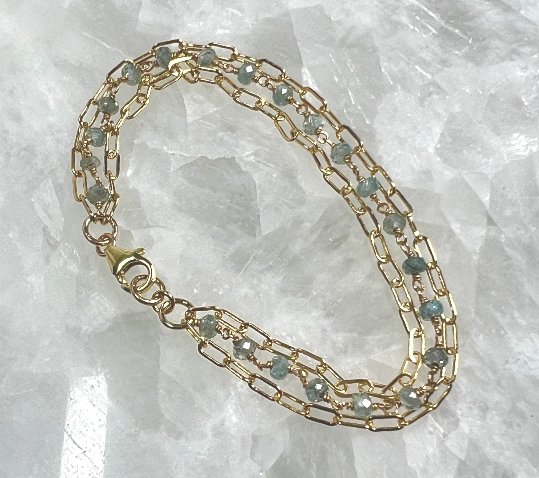 Oscar Bracelet Natural Blue Zircon Gold Filled