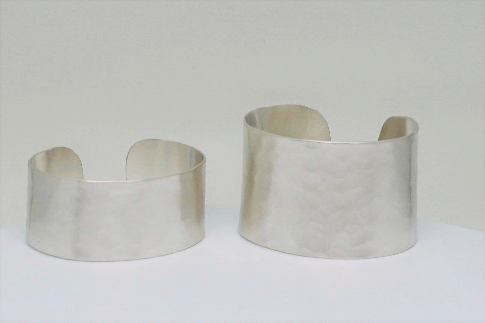 Hand forged 1" wide substantial solid sterling silver cuff bracelet. Each cuff is finished with a slight hammered texture and polished to a smooth creamy matte satin that can only be achieved by hand finishing. The end result is a truly unique hand-crafted piece with a rich artisanal component.